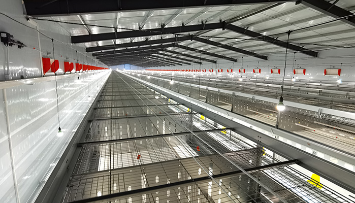 階梯式籠養(yǎng)設(shè)備,實(shí)現(xiàn)了行車喂料系統(tǒng)、集蛋系統(tǒng)、履帶式清糞系統(tǒng)的自動(dòng)化控制,具有操作方便勞動(dòng)生產(chǎn)率高,經(jīng)濟(jì)效益高等特點(diǎn),適用于大規(guī)模蛋雞養(yǎng)殖。